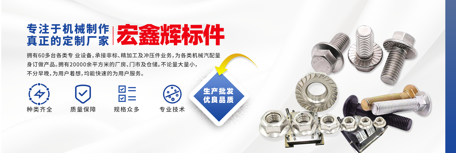 四川宏鑫輝標準件制造有限公司下設:南充市宏輝機械制造有限公司,南充市聚宏機電設備有限公司,公司始建于1994年。為了拓展市場,降低成本,本公司于2007年、2020年分別在南充、 成都、重慶創(chuàng)建了生產(chǎn)基地。擁有60多臺各類專 業(yè)設備,承接非標、精加工及沖壓件業(yè)務,為各 類機械汽配量身訂做產(chǎn)品。擁有20000余平方米的廠房、門市及倉儲。公司以誠信為本,竭誠為廣大客戶提供服務。不論量大量小,不分早晚,為用戶著想,均能快速的為用戶服務。 公司所生產(chǎn)及代理的產(chǎn)品為業(yè)界人士公認的國內、國際優(yōu)等品牌。在產(chǎn)品性能與質量
